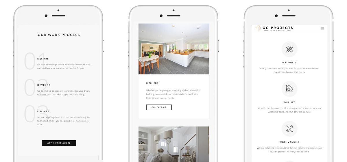 Background: having relied on platforms that allows consumers to find local trade professionals and check their credentials, CC Projects needed to elevate themsleves from that crowd by having a quality website that matched their quality workmanship.