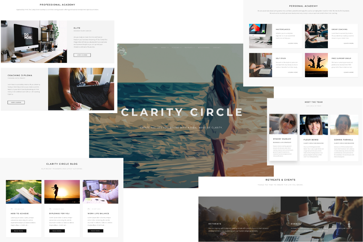 Background: The Clarity Circle are life coaches who revolutionise your business and life by helping you forge a career. Learing to enhance your mindset and to radiate success in your industry meant that the new website had to resonate such feelings.